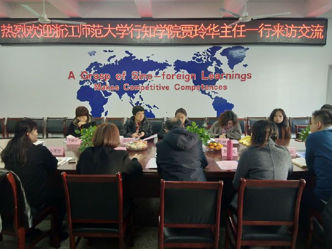 贾玲华主任对我校外国语学院的热情接待表示衷心的感谢,他简要介绍了浙江师范大学行知学院文学院的办学历程、培养方案和师资队伍建设中的做法及成果。