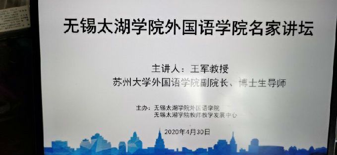 本次讲座是无锡太湖学院外国语学院、无锡太湖学院教师教学发展中心主办的无锡太湖学院教师在线学术讲座系列活动之一。该系列活动将定期邀请名家举办在线学术讲座、研讨,旨在进一步推动“停课不停学、停课不停教、停课不停研”,助力无锡太湖学院教师疫情期间做好教学、科研工作。