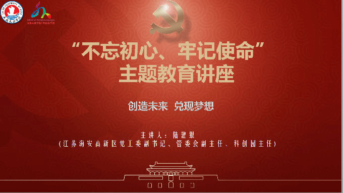 10月24日下午,外国语学院于工科实验大楼成功举办“不忘初心、牢记使命”主题教育讲座。本次讲座外国语学院党总支副书记俞昊波主持,江苏海安高新区党工委副书记、管委会副主任、科创园主任陆建银主讲,全院师生共同参加。
