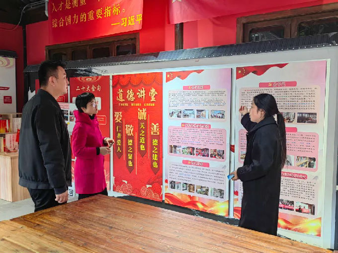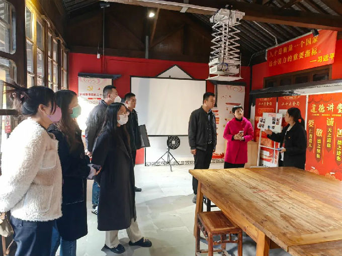 外国语学院党总支师生党员们首先参观了清名桥街道党建工作长廊和工作日志。随后,街道党建指导员刘敏慧同志为我们详细介绍了长街社区党建的建设与发展情况,师生党员还参观了长街社区党建活动的主要场地“长雅亭”。之后,俞书记与长街社区党委副书记周甜就党建共建和发展与创新等进行了广泛而深入的交流。