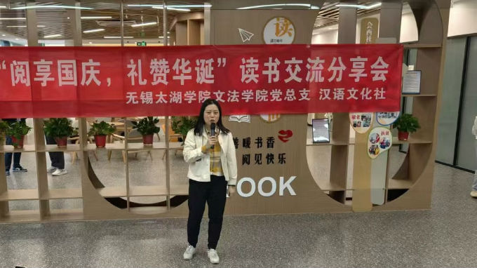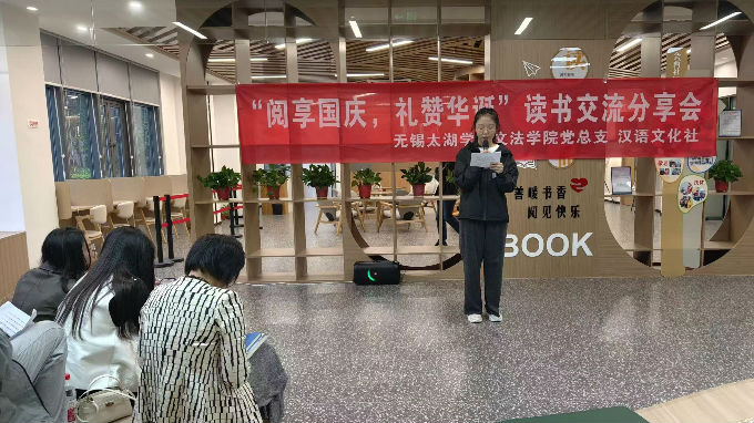 为庆祝中华人民共和国成立75周年,营造学院良好的阅读氛围,无锡太湖学院文法学院党总支于10月22日下午在无锡市少年宫城北教学点顺利举办“阅享国庆,礼赞华诞”主题党日活动。本次活动由党总支宣传委员阮菲同志作为活动嘉宾,学生党支部书记钱紫云、文法学院团总支书记蒋晓璐、汉语言文学系陈原副主任、学生党员代表及汉语文化社社员共同参与了本次活动。活动围绕分享《人类的群星闪耀时》这本书的阅读感悟展开。