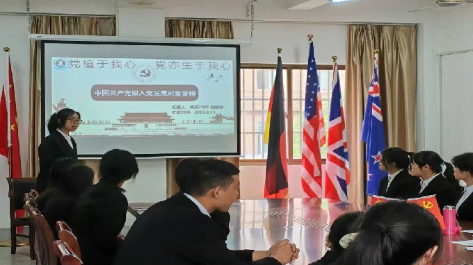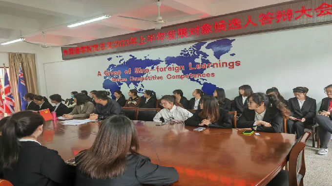 为做好党员培养发展工作,深入了解发展对象的各方面能力以及入党动机,在秉承对发展对象全方面能力进行考察的原则下,在5月11日下午在6号楼211会议室组织开展了外国语学院党总支2023年上半年发展对象候选人答辩大会。校党委委员、外国语学院副院长吴旻昊、外国语学院党总支副书记俞昊波、学生党支部书记任思悦共同出席担任评委。