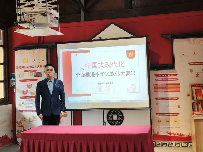 为深入学习贯彻党的二十大精神及习近平新时代中国特色社会主义思想,无锡太湖学院外国语学院学生党支部与无锡市梁溪区退役军人事务局清名桥街道退役军人服务站、清名桥街道总工会于11月10日下午在“古韵南禅·南书房红色驿站”基层党建工作指导站开展“以中国式现代化全面推进中华民族伟大复兴,宣讲二十大精神”主题党课以及“倡导全民阅读,