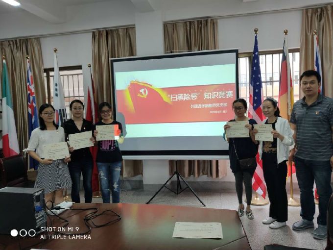 外国语学院党总支自5月底开展“扫黑除恶”专项党日活动以来,在学习形式、宣传方式上都进行了大胆的尝试,6月中旬是该项系列活动的第三阶段,也是最后一个阶段。在这一阶段的活动中,党总支全面采用了“线上+线下”的新模式,为此次“扫黑除恶”专项活动划上了圆满的句号。
