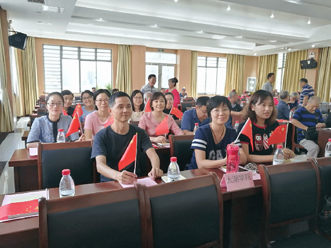 2019年9月20日外国语学院党总支教职工党员同志参加了梅园社区党总支举办的庆祝新中国成立70周年的文艺汇演活动。社区黄旭书记发表了热情洋溢的讲话,歌颂祖国七十年来取得的巨大成就。