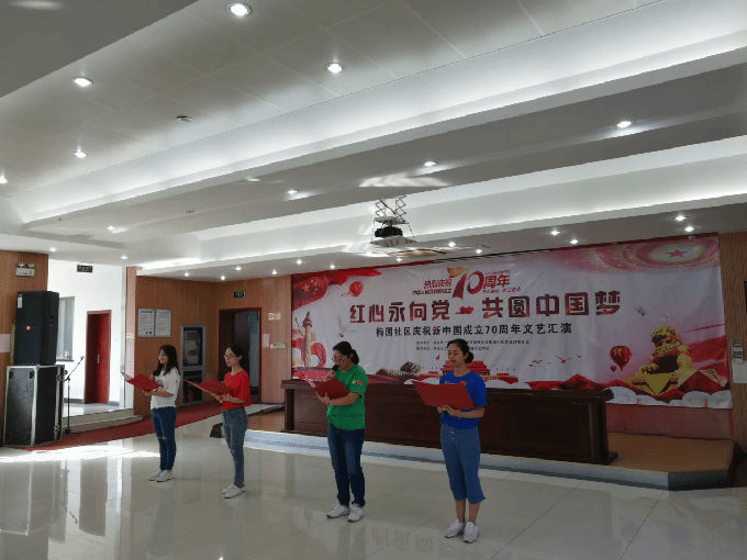 节目表演期间还进行了两轮时政知识竞赛,老师们和社区党员同志们都积极抢答,气氛热烈,最后在大合唱《歌唱祖国》中圆满结束了本次庆祝活动。