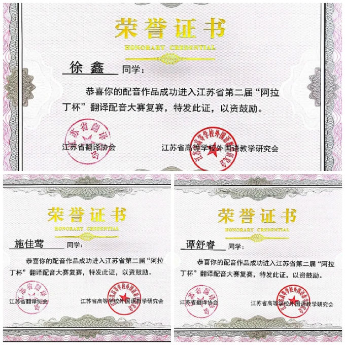 近日,2022江苏省第二届“阿拉丁杯”翻译配音大赛初赛顺利结束。本次比赛是先通过校内选拔优秀学子进入省赛,再由组委会对参赛作品进行线上筛选,首先,在此热烈祝贺9位同学在省赛中获取复赛的资格!优胜者将进入复赛。经过同学们的不懈努力,有9位优秀学子脱颖而出,顺利通过初赛。此次江苏省初赛的获奖同学名单已经在网站上进行公示并下发至各学校。