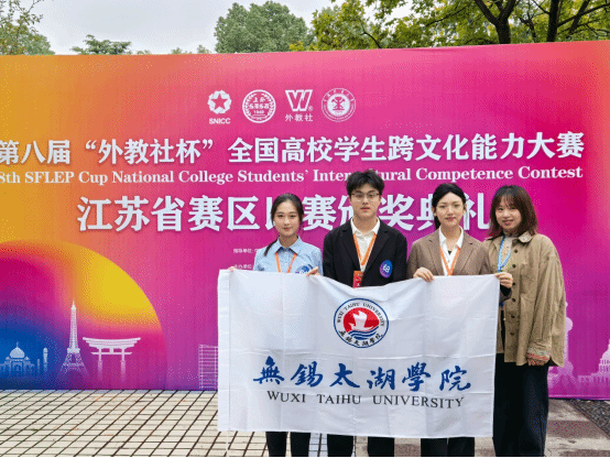 2025年10月24至26日,第八届“外教社杯”全国大学生外语能力大赛跨文化能力大赛江苏省赛区决赛在中国矿业大学(南湖校区)隆重举行。我校三位参赛选手——会计2402姜惠、商英2302张以和以及工商2302魏昌杰在领队指导老师吴洁和指导老师齐丽红的带领下,沉着应战、发挥出色,凭借原创的“中国深蓝电车企业赴挪威洽谈合作”模拟跨文化商务谈判,以沉浸式演绎与专业理论分析脱颖而出,最终荣获江苏赛区本科中国学生组二等奖,为学校赢得荣誉。