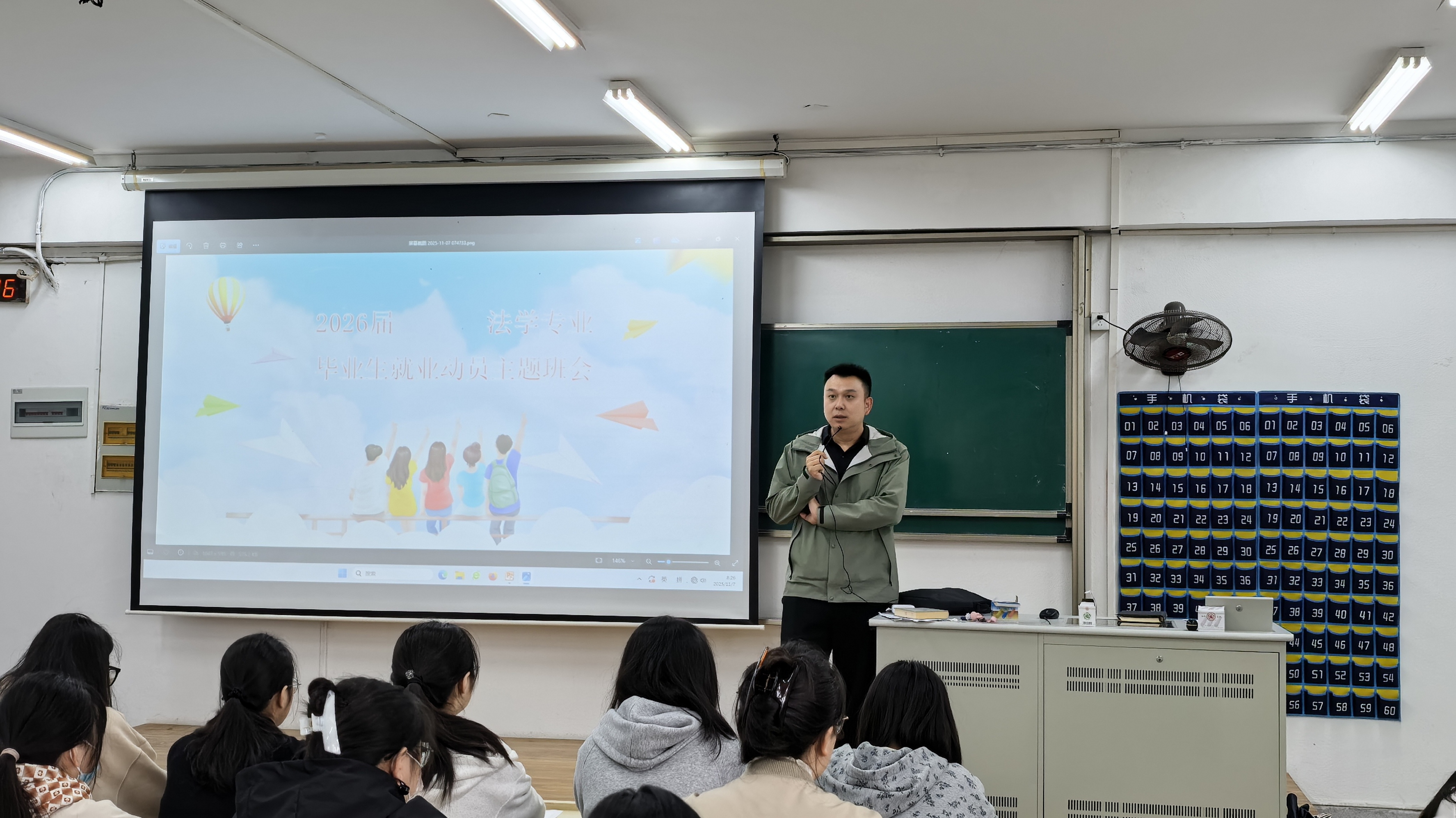 11月7日,文法学院在7号楼119教室召开了2026届毕业生就业动员主题班会。文法学院党总支副书记俞昊波、文法学院辅导员蒋晓璐老师以及2026届法学专业全体毕业生参加本次主题班会。