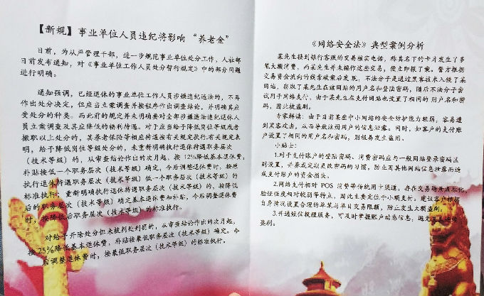 在如今信息技术飞速发展的时代,中老年人无法快速的融入并且熟知,对于各种类型的信息无法做出正确的判断,出现各种诈骗活动侵害中老年人的合法权利,此次法律知识普及中针对“养老金”“网络安全”两项内容进行了重点宣传。