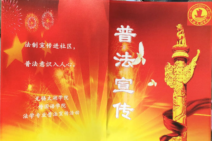 2017年7月3日至7月11日,外国语学院法学1502乡村法律知识普及团在无锡市新吴区硕放镇南星苑设点开展了普法宣传暨无锡太湖学院大学生“三下乡”实践活动,针对当今社会及人们面对的法律问题,进行了一场以“法律进农村,普法千万家”为主题的乡村普法宣传。通过这一活动增强个人荣誉感,培养大学生服务社会意识,增强人们法律意识,帮助当地人们解决实际生活中的法律问题。