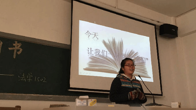看着站在台上讲述经历的他们,才真正体会到了原来每个人都是一本充满故事的书。看着坐在下面静静倾听的他们,才明白换一种方式真的可以让我们与“书”的交流无缝衔接,也许在座的整个法学1502班级同学感同身受。
